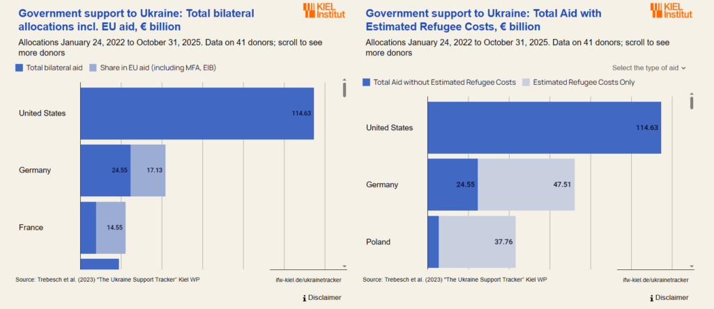 Nachdem die Amerikaner den Ukrainekrieg an Europa übergeben haben, drehen die Zahlen ins Verrückte12. 72 Milliarden Euro hat Deutschland alleine bereits geleistet. Wir haben es ja.